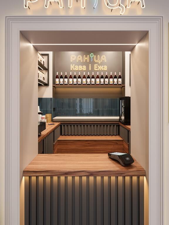 Дизайн-проект кафе «РАНIЦА» разработан с учетом принципов минимализма, эргономики и визуальной идентичности бренда. Пространство сочетает в себе уют, функциональность и современную эстетику, создавая комфортную атмосферу для гостей и эффективную рабочую среду для персонала.