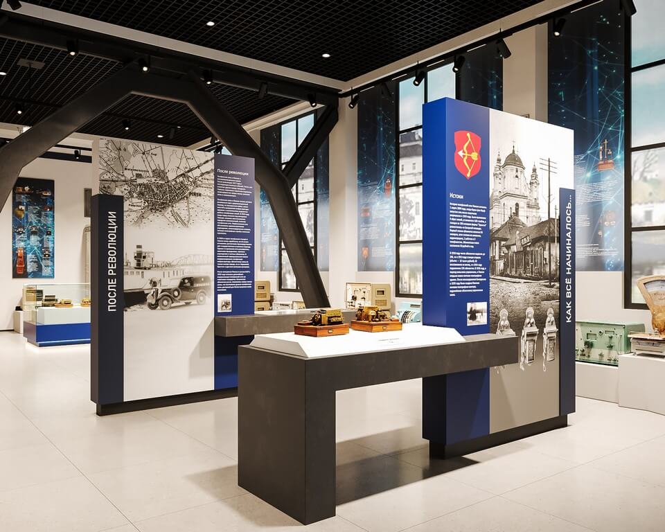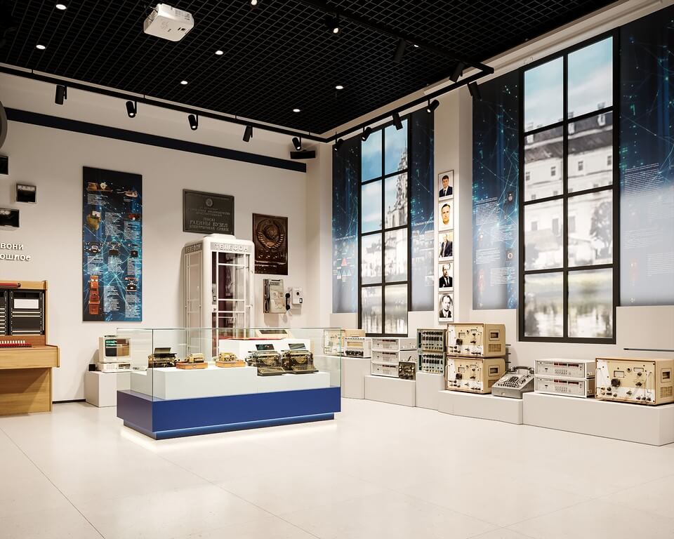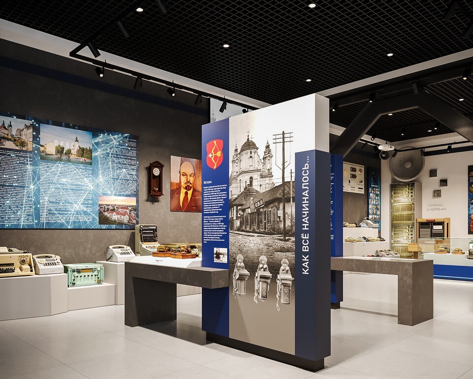 Музей Белтелекома — это современное экспозиционное пространство, посвященное истории и развитию телекоммуникаций в Беларуси. Дизайн проекта сочетает технологическую строгость, историческую глубину и архитектурную выразительность, создавая среду, где прошлое и будущее отрасли представлены в едином визуальном и смысловом контексте.