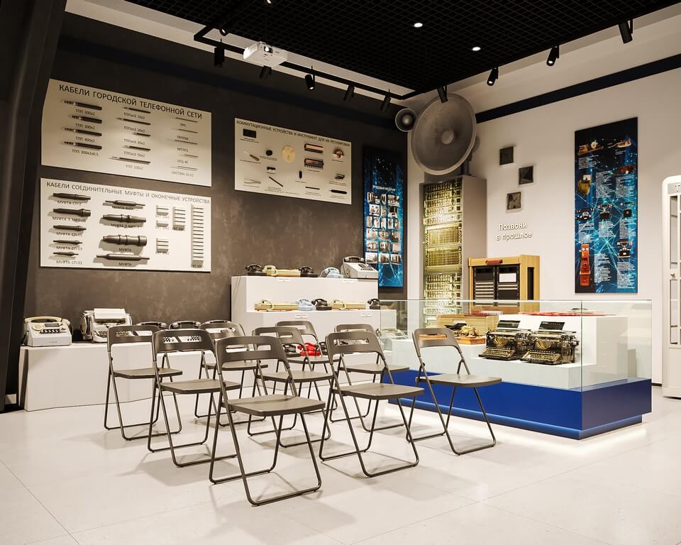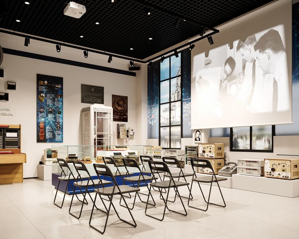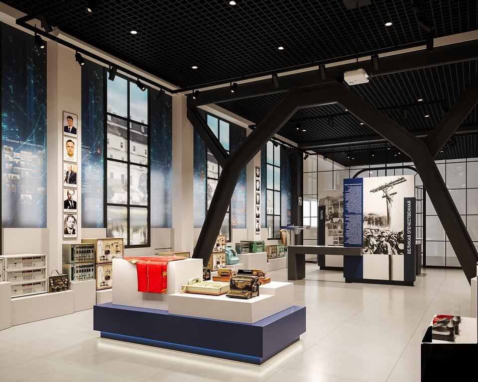Дизайн музея Белтелекома — это интеллектуальное пространство, где каждый элемент работает на раскрытие темы связи: от первых шагов до цифровой эпохи. Проект демонстрирует уважение к истории, инженерной мысли и культурному наследию отрасли, предлагая посетителю не просто экспозицию, а погружение в эволюцию коммуникаций.