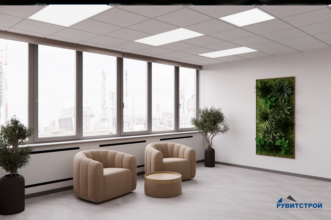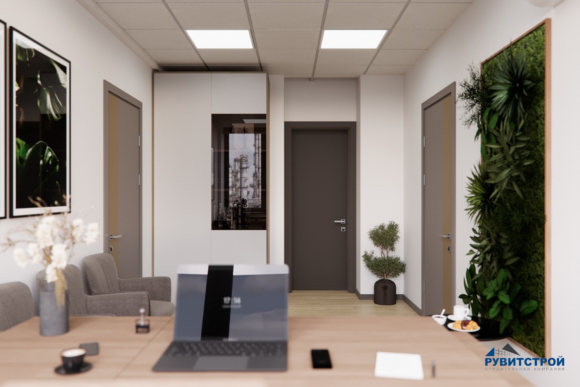 В приемной, в кабинете директора, в актовом зале вас встретят яркие акценты зелени.