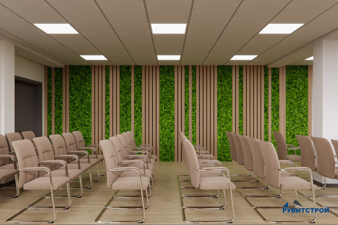 И целая декоративная стена, с чередующимися модулями дерева и растений, на каждом мероприятии будет напоминанием и подтверждением важности экологичного производства в современном мире.