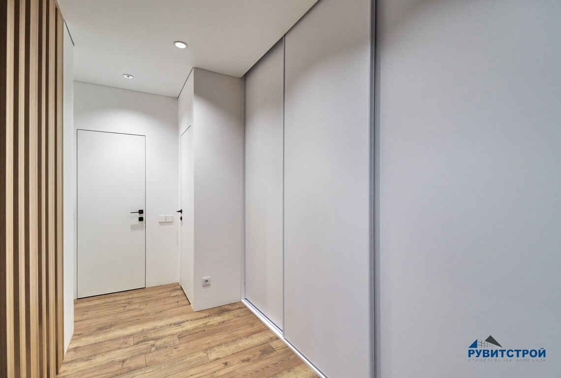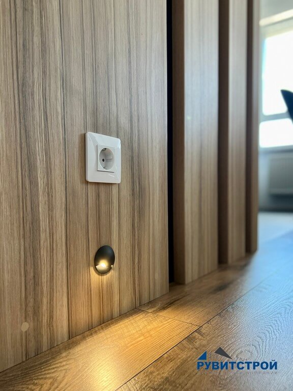 - Геометрия 90°: идеальное выравнивание углов позволило установить встроенную мебель без щелей и зазоров.