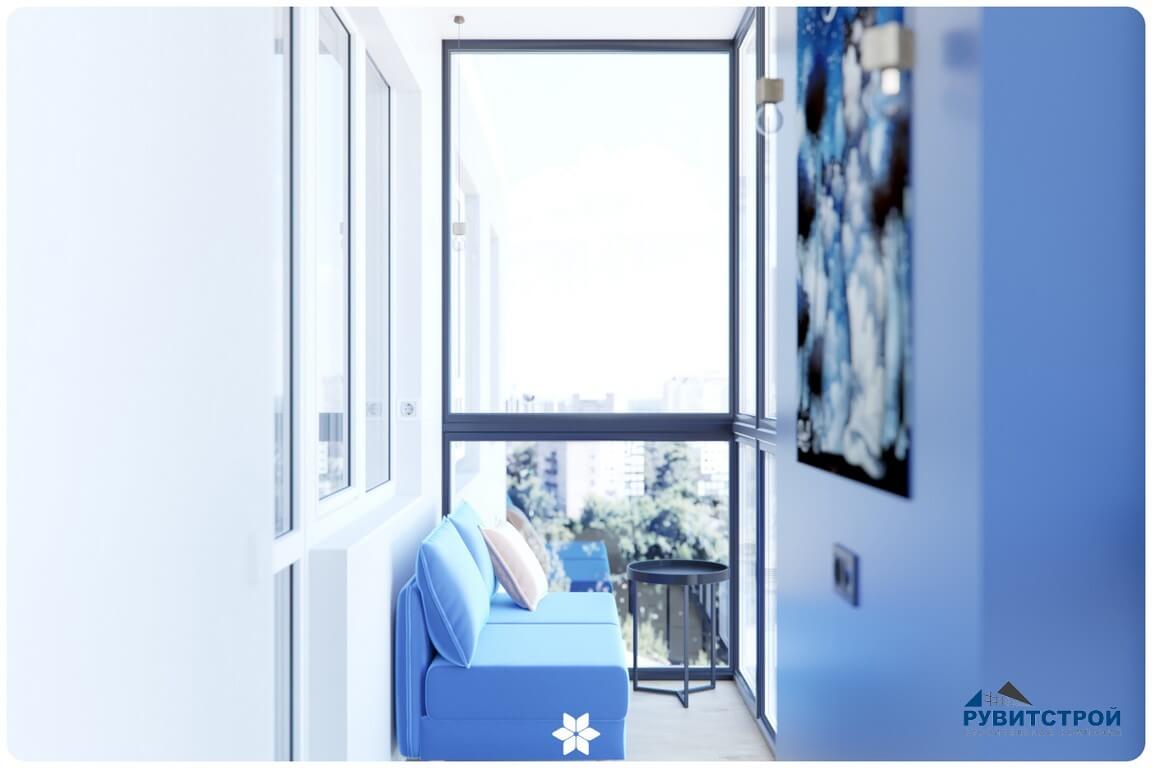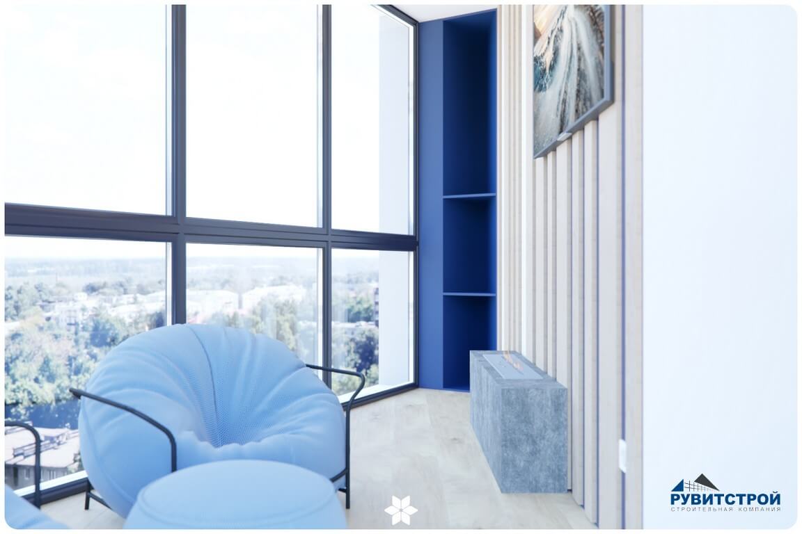 - Лоджия как лаунж-зона: качественное утепление и отделка материалами под дерево создали уютный уголок для отдыха с панорамным видом.
