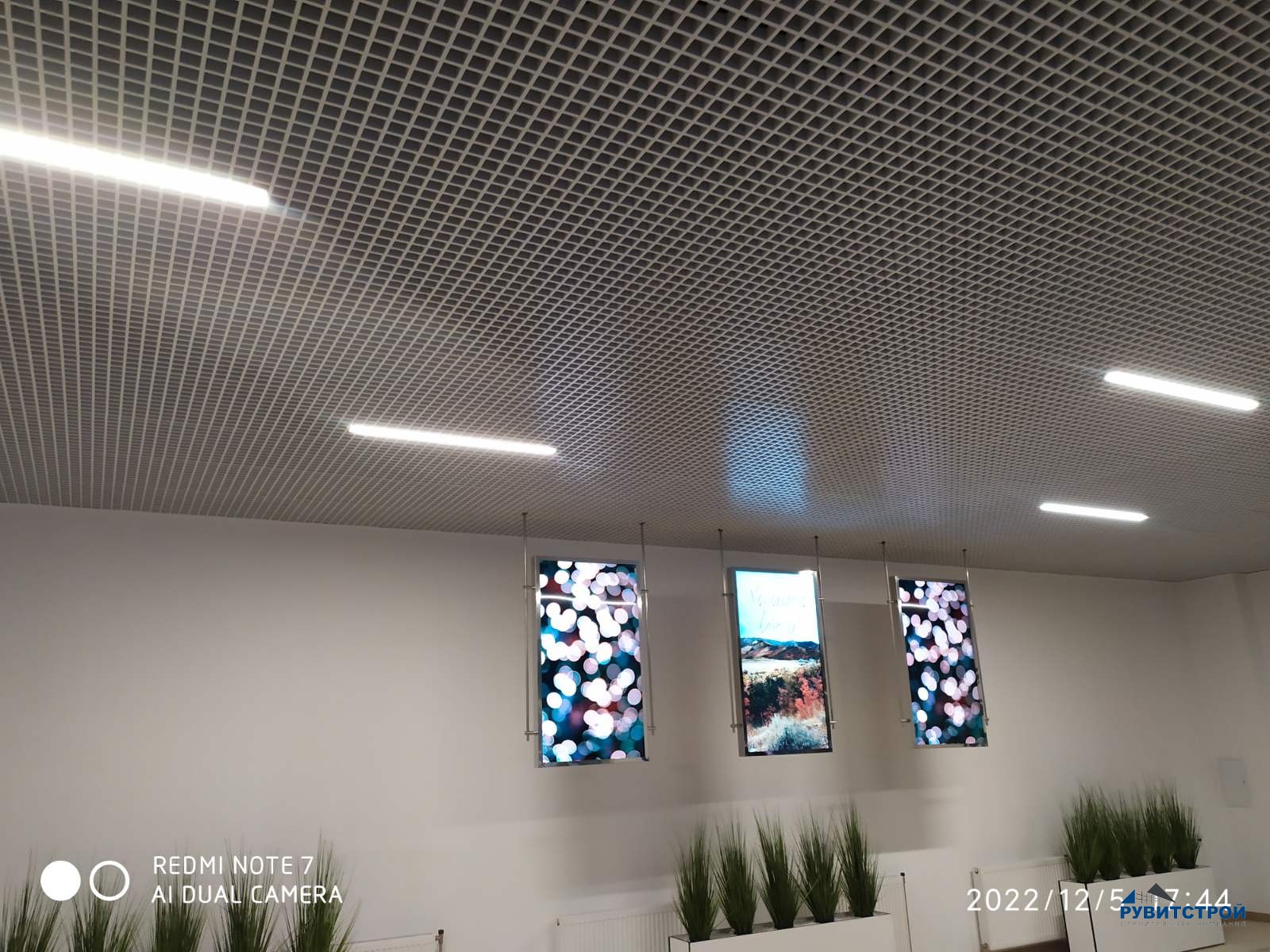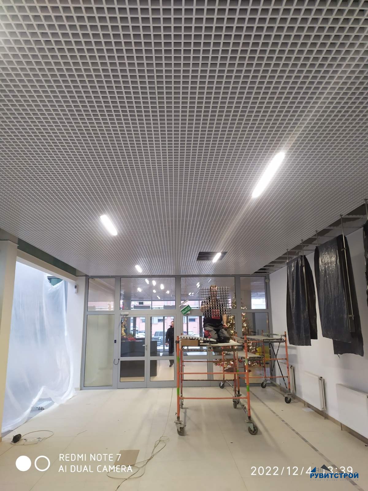 - Выполнен монтаж потолка «Грильято»
