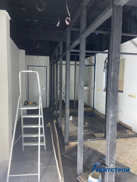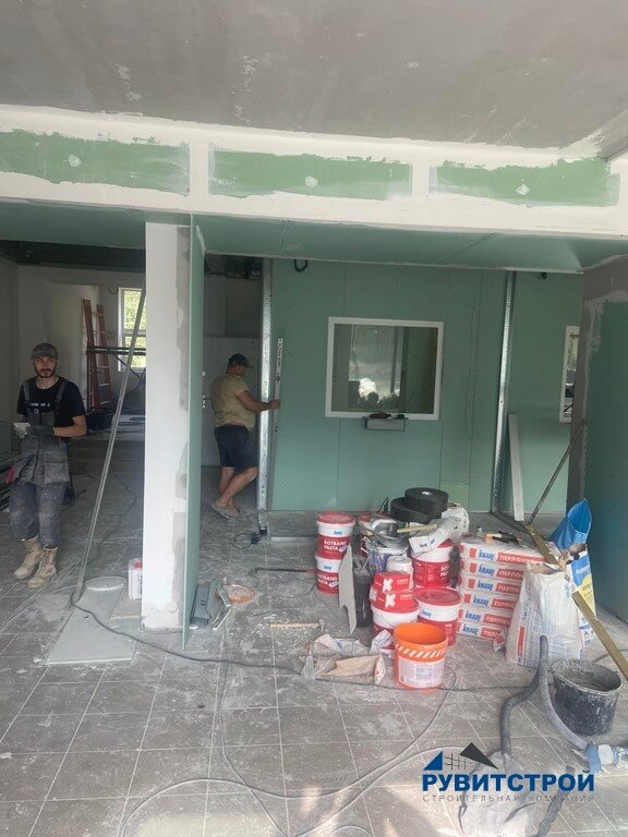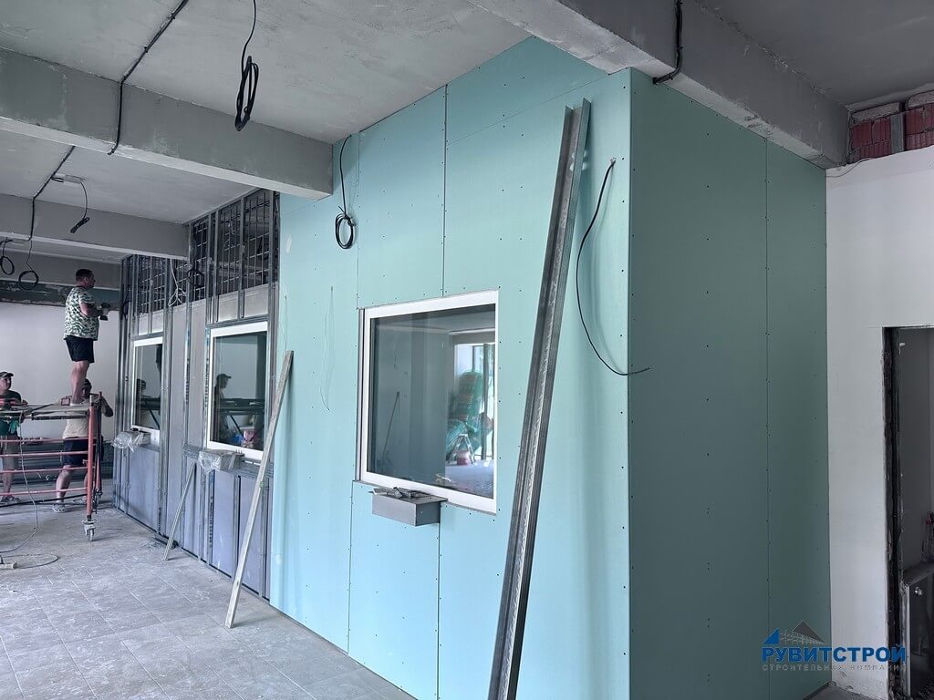 - Монтаж перегородок из ГКЛ с последующей отделкой.