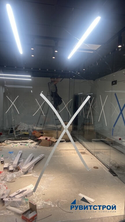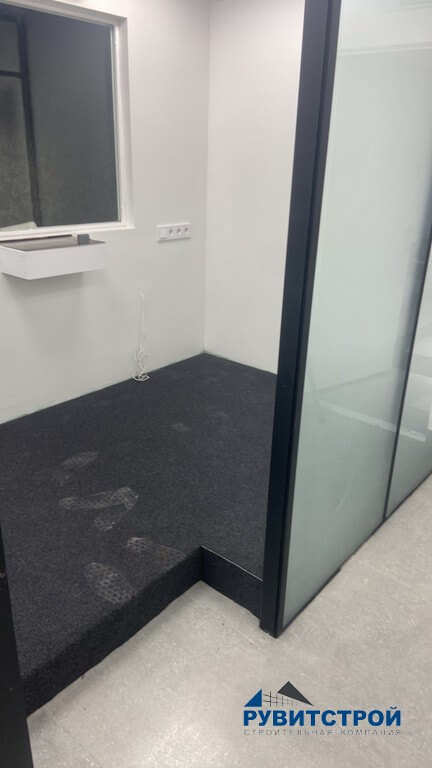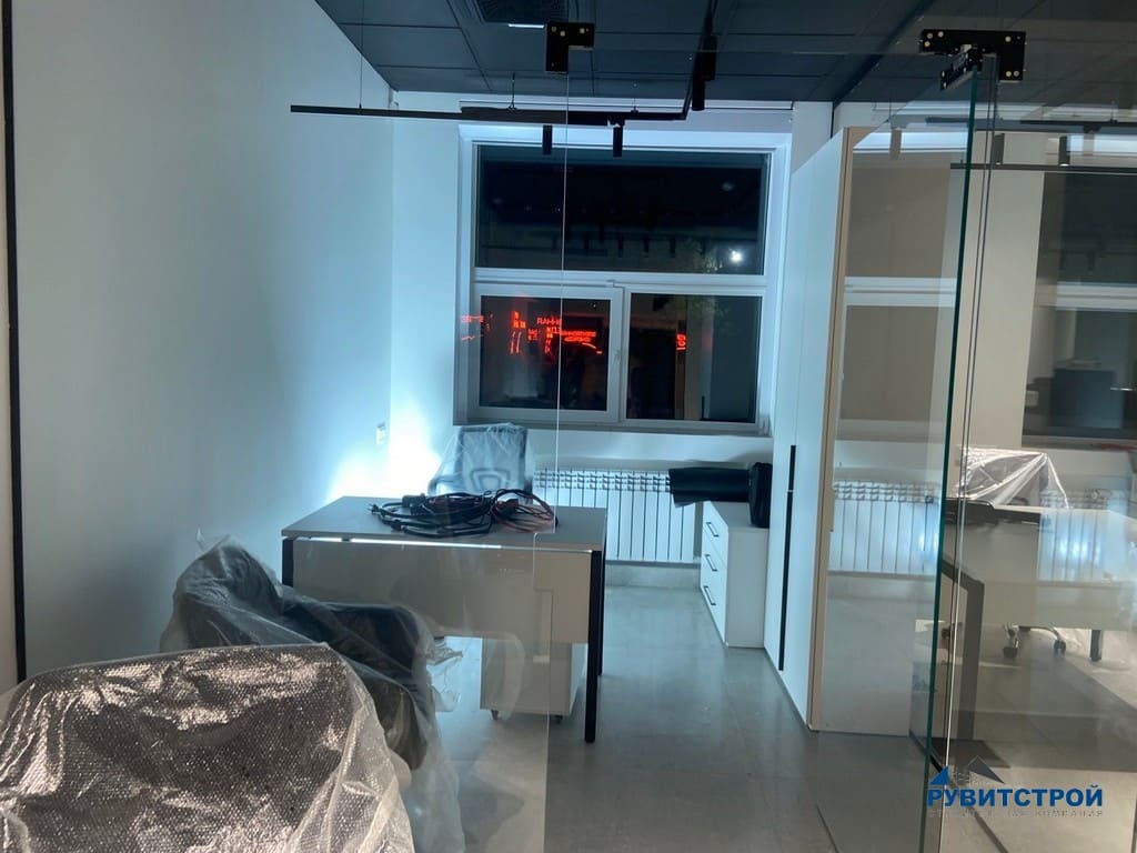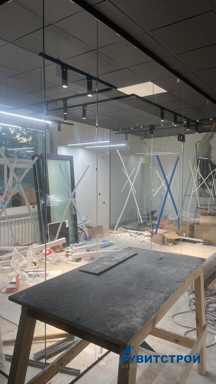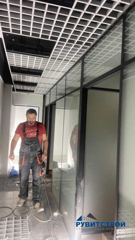 Установлены перегородки из закаленного стекла с фурнитурой премиум-класса. Обеспечено зонирование пространства без потери визуальной открытости.