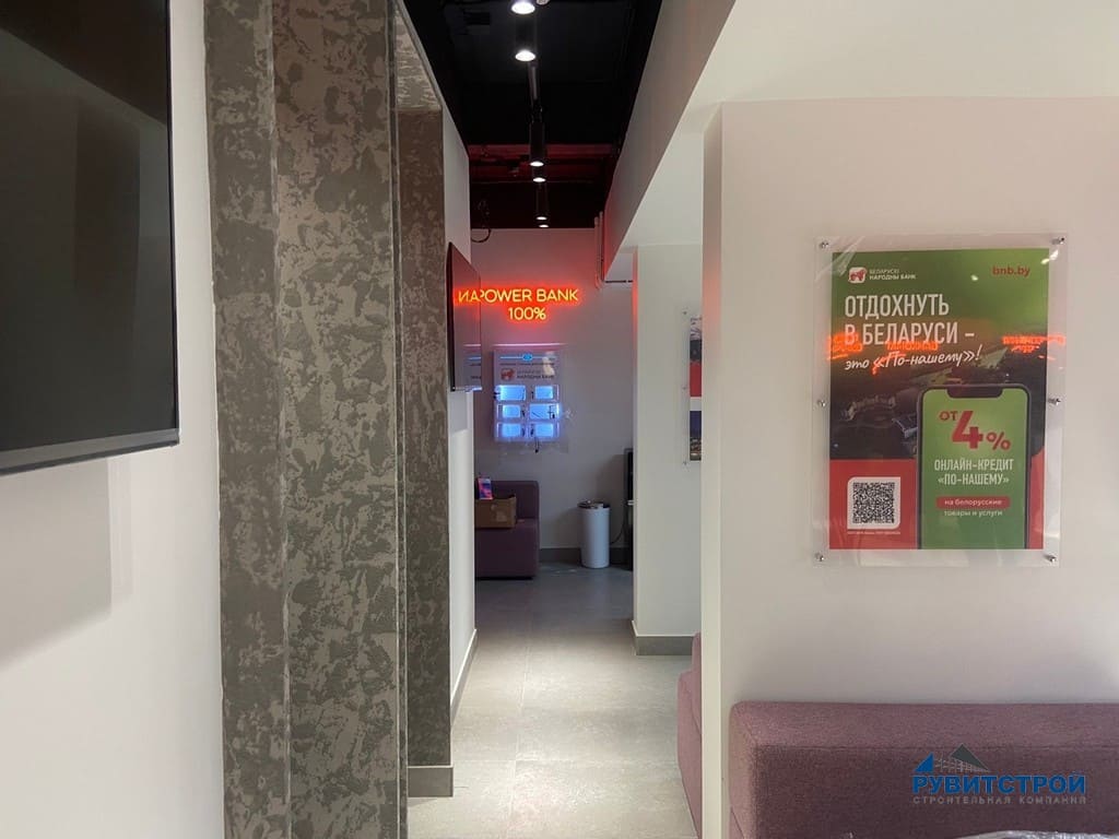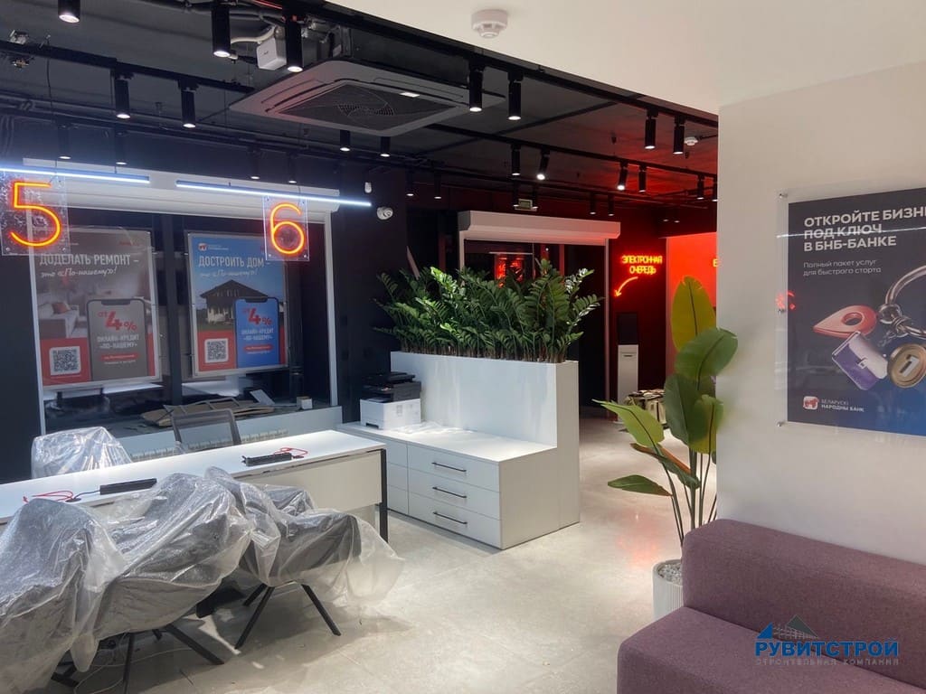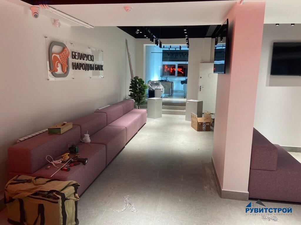 | Описание | Отделочные работы в Витебском отделении БНБ-Банка по разработанному дизайн-проекту: комплекс строительных и инженерных работ на объекте. |