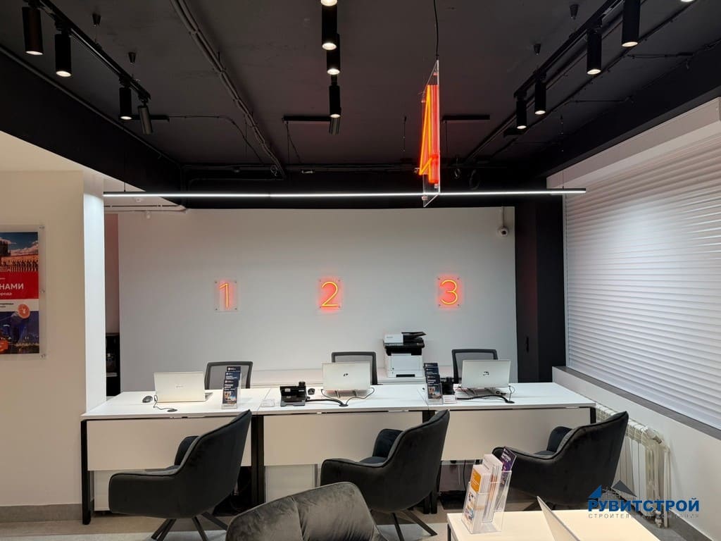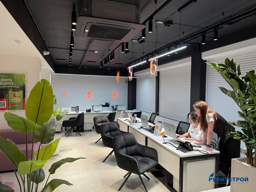 Поставлена и собрана мебель, соответствующая корпоративному стилю и эргономике банковского отделения.